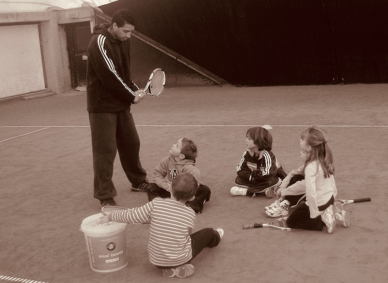 Un enfant âgé de 4 à 5 ans est très sensible aux couleurs. Nous lui proposerons donc un espace – équivalent à un demi-court de tennis traditionnel – composé de quatre petits terrains.