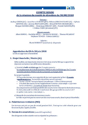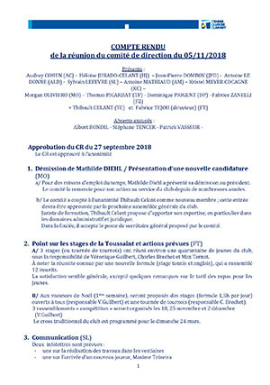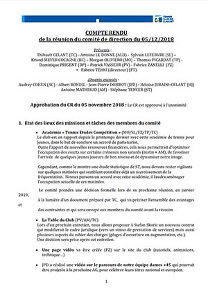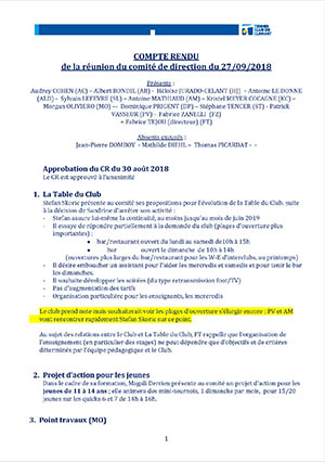 Vous trouverez ci-dessous les comptes rendus des réunions de Comité depuis le mois d’août 2018
